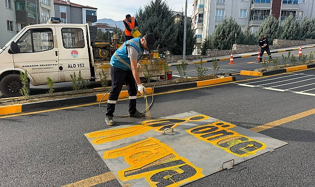 Karabük Belediyesi, kent genelinde trafik güvenliğini artırmak amacıyla yaya geçidi çizgilerini yenileme çalışmalarını sürdürüyor.