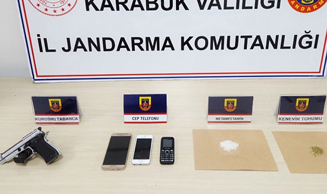 Karabük'te düzenlenen uyuşturucu operasyonunda 4 şüpheli gözaltına alındı.İl Jandarma Komutanlığı ekipleri uyuşturucuyla mücadele kapsamında çalışma yürüttü. Bu kapsamda ekipler tarafından 4 şüpheliye ait 3 ev ve bir iş yerine operasyon düzenlendi. Yapılan aramalarda 1.25 gram metamfetamin, 1.63 gram kenevir tohumu, ruhsatsız kurusıkı tabanca ele geçirildi. Gözaltına alınan şüphelilere ‘ruhsatsız kurusıkı tabanca bulundurmak’ ve ‘uyuşturucu madde etkisi altında araç kullanmak’ suçlarından 60 bin 812 lira idari para cezası uygulandı. 3 cep telefonuna incelenmek üzere el konuldu. Şüpheliler işlemlerinin ardından adliyeye sevk edildi.